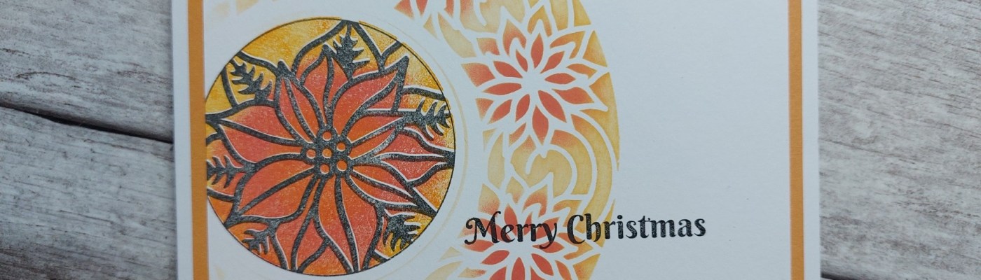 Welcome to my crafty blog and another look at the new ‘poinsettia festive rounds’ stamps from ClarityCrafts – this time I’ve paired them up with the ‘poinsettia swirls’ aperture stencil.