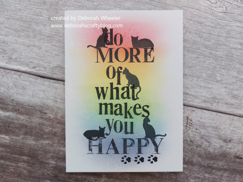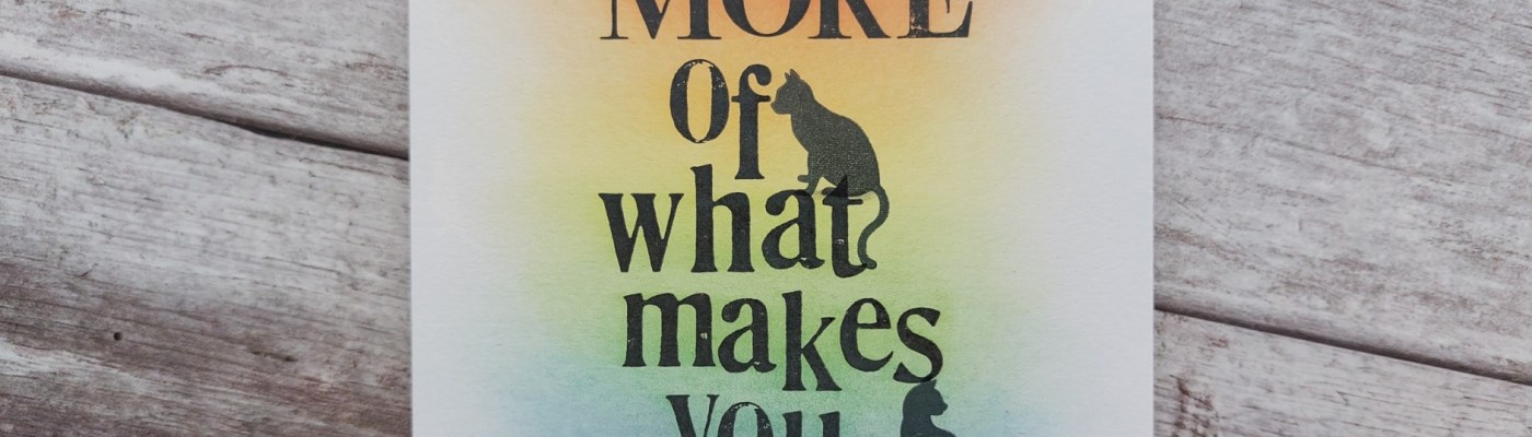 Here I am with another of the new A5 quote postcards from ClarityCrafts, this time with the ‘wee cats’ stamps – they definitely know what makes them happy! I’m sharing this as another offering for the encouragement/friendship theme at Time Out, together with the ink blending challenge at AAA Cards