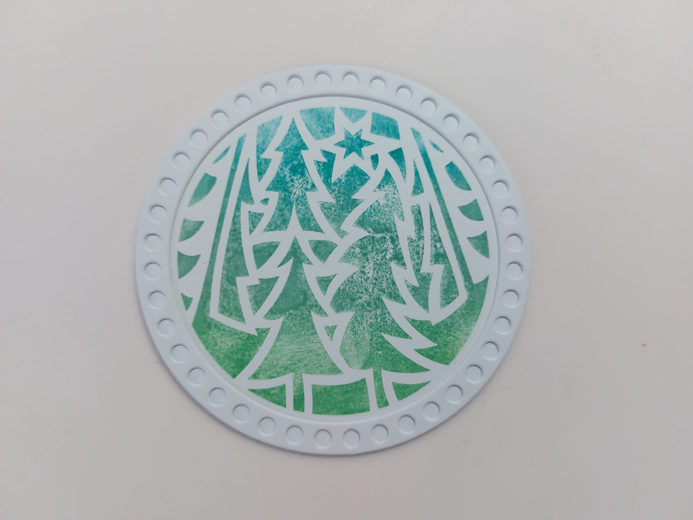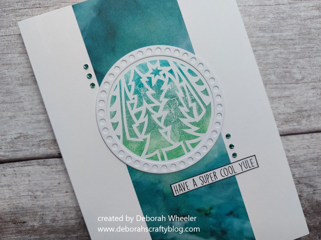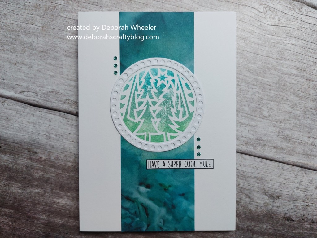 Hello there. I’m back today with another of my DT samples for ClarityCrafts new ‘festive rounds’ collection – this time its’ the turn of the ‘pine trees’. I’m going to share this one with Peace on Earth and Happy Little Stampers for their Christmas (although I didn’t take the option of using a stencil on this one) and dies challenges.
