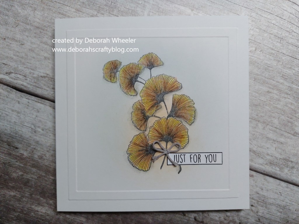 Hello there. I’ve been playing with lots of new products recently so decided it was time to dig back into my stash and find a stamp set I hadn’t used for some time – meet the ‘ginkgo spray’! I pulled together a couple challenges for inspiration on this one, taking the left hand column on TicTacToe‘s grid and the ‘autumn’ theme from The Paper Players