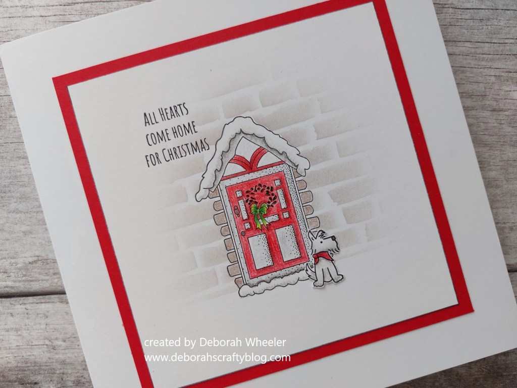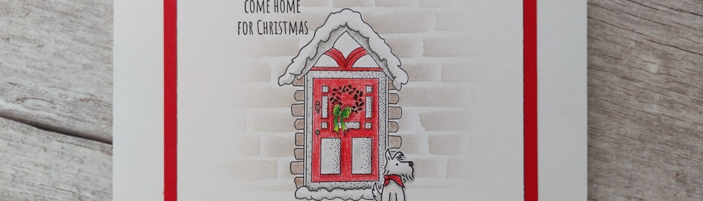 Hello crafty friends. The third part of ClarityCrafts ‘Linda’s Christmas Compendium’ stamps are launching today on Create & Craft TV and I am in love with the ‘home for Christmas’ set. This little doggy is just so adorable – he reminded me of Toby, my friend’s little Westie! I’m going to share this one with the Christmas and stencil challenges at Happy Little Stampers.