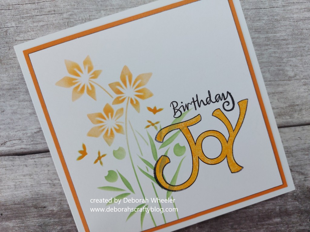 Such a beautiful card, Deborah! Love the design, the big sentiment and the colour palette! The stencil is so pretty (I love a good stencil!). Thank you so much for guest designing for us at AAA Birthday this month!