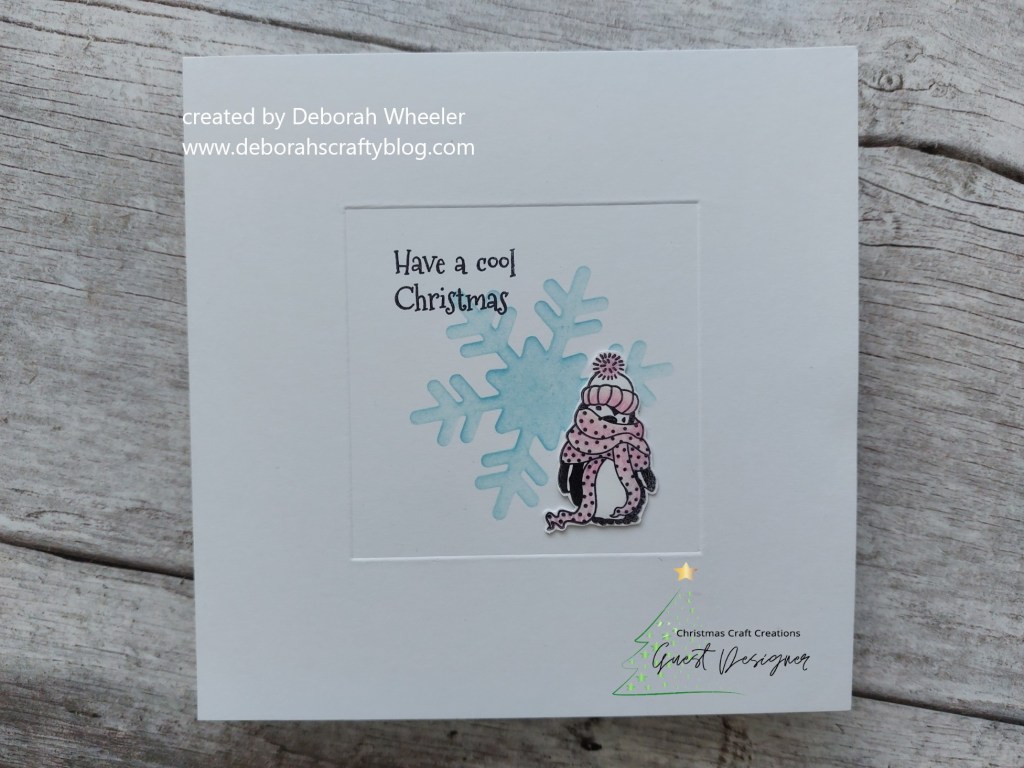 Hello there! I’m delighted to have been invited along as guest designer for the new challenge at Christmas Craft Creations. This month’s theme is ‘add a hat’ and I immediately thought of ClarityCrafts ‘family of penguins’ stamp set – this little one looks well wrapped up! I’ve taken the colours from Less Is More and will also share this with Merry Little Christmas