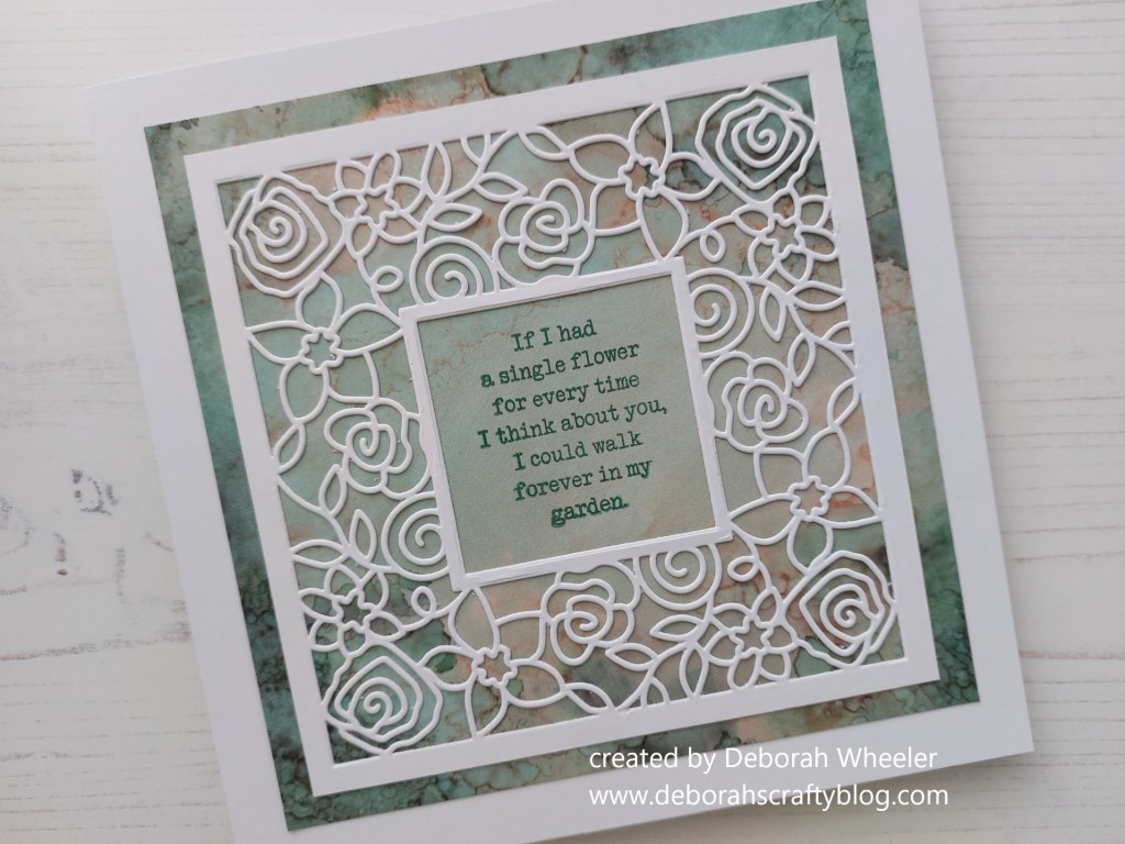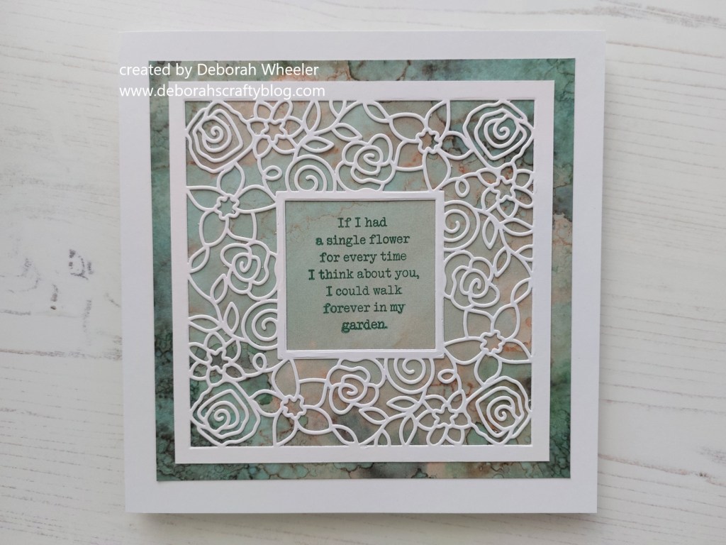 A beautiful diecut frame and sentiment,love the delicate detailed frame