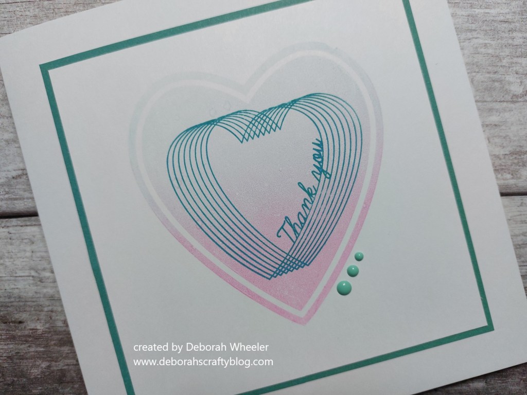 Hello crafty friends. I’m back on track with working through this year’s Clarity Craft Club stamps, thanks to my friend Jean who’s loaned me the ones I can’t find! Today it’s the ‘thank you hearts’ from April – perfect for adding to the ones I need following all the goodies that Santa brought me 😊 I’ve sat the main stamp on one of Clarity’s backdrop stamps, using the new colours from Color Dare
