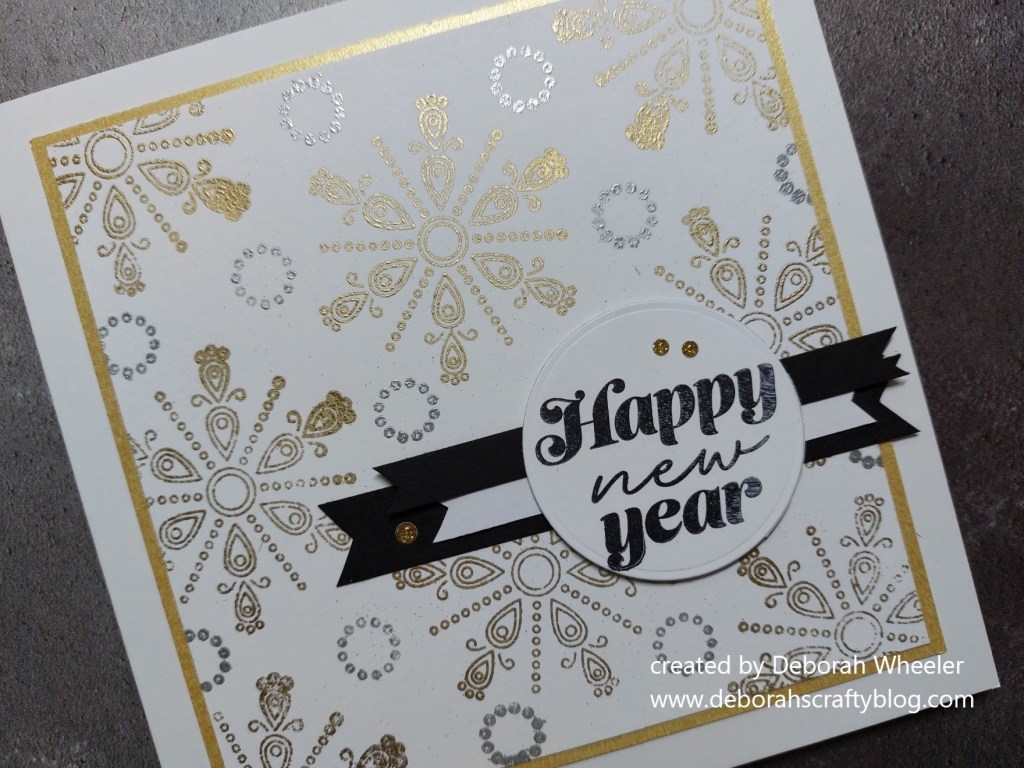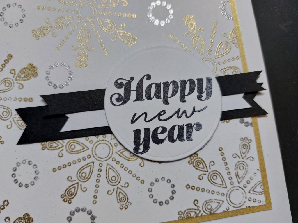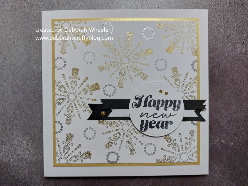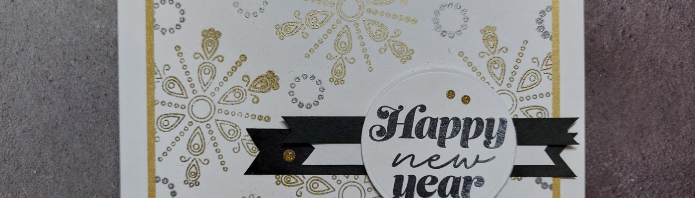 Well, that’s Christmas finished for another year and here’s my final card from Clarity‘s 2023 Craft Club – the ‘New Year Round’ set. I felt it warranted some lovely heat embossing, so picked up the colours from TGIF challenges together with the ‘new’ theme from Time Out.