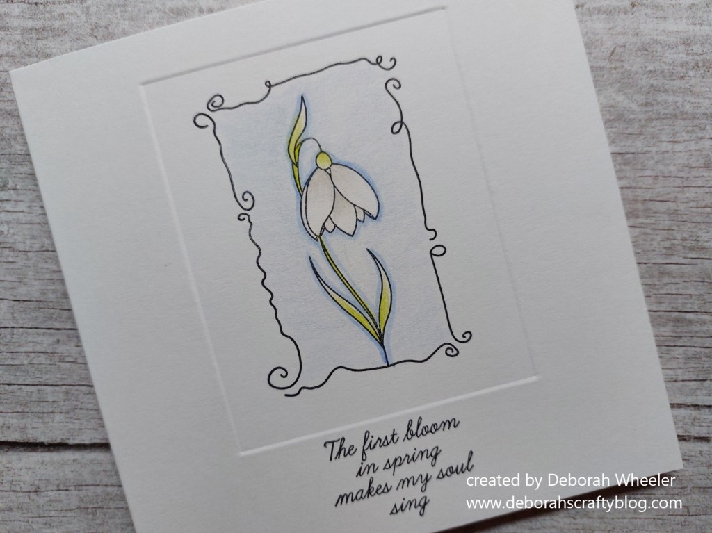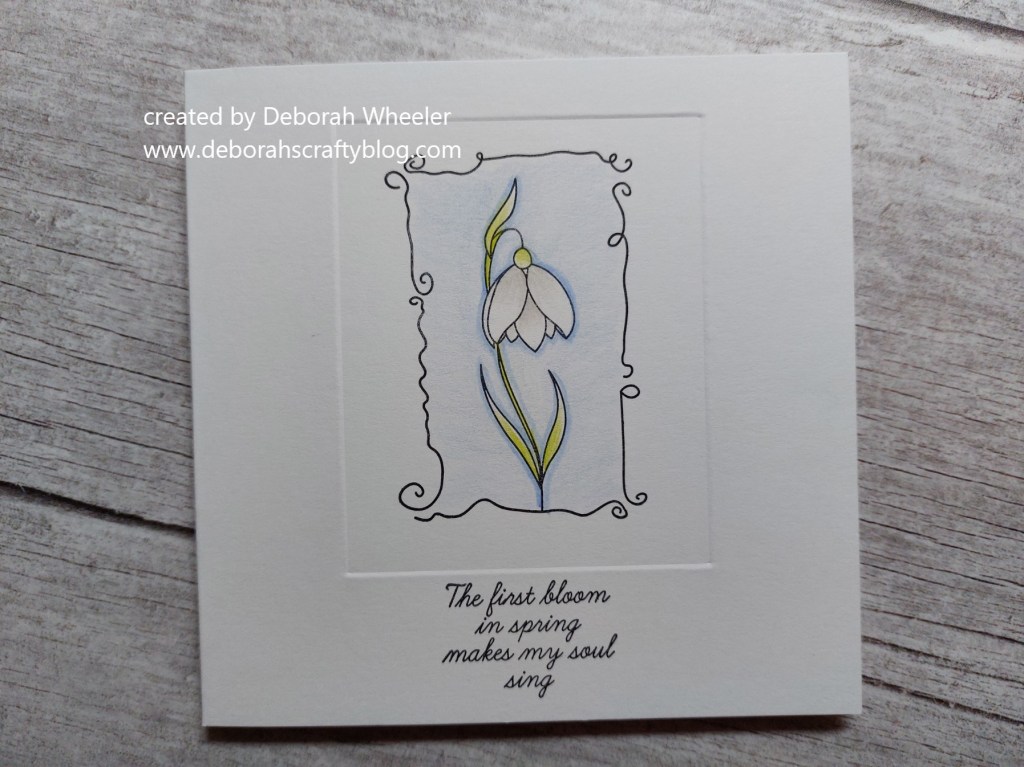 Such a pretty card and I love that snowdrops are usually the first sign of spring. It will be a while before they appear here, but I too have a stamp so I may produce a card using it.