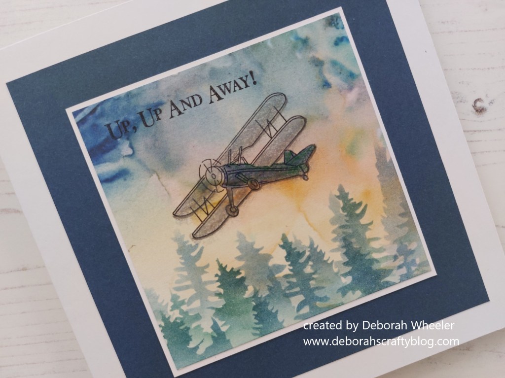 I love all the dimension you got by changing the color and depth of the trees, Deborah. What a great masculine card with that fabulous biplane. Thanks for sharing it with us at Just Us Girls.