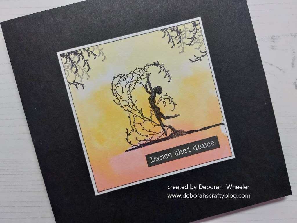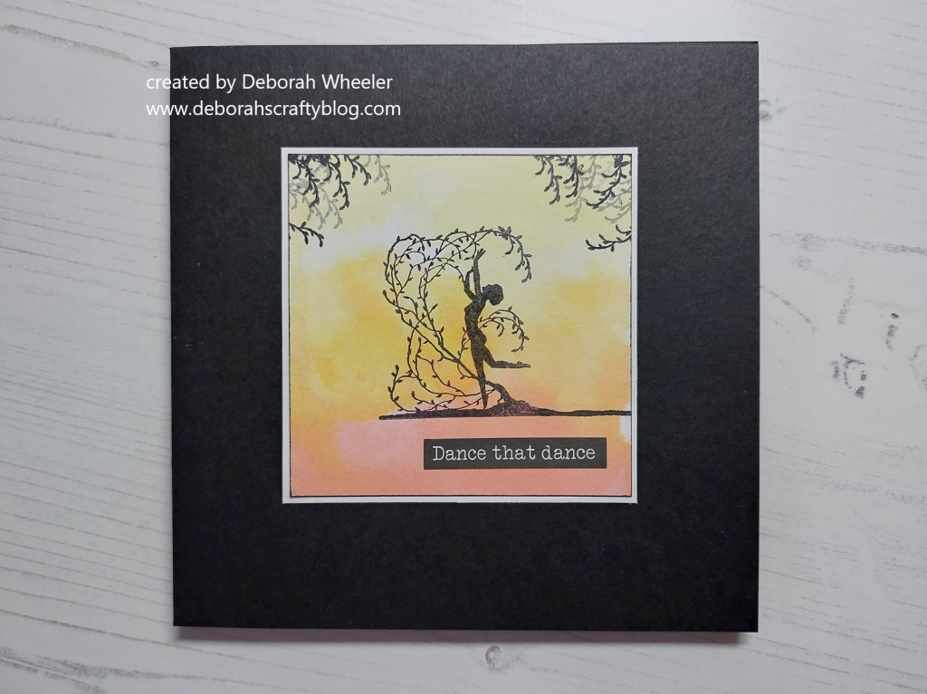 I added a narrow white mount, attached the topper to a black 6×6 card blank and finished with an appropriate word sticker.