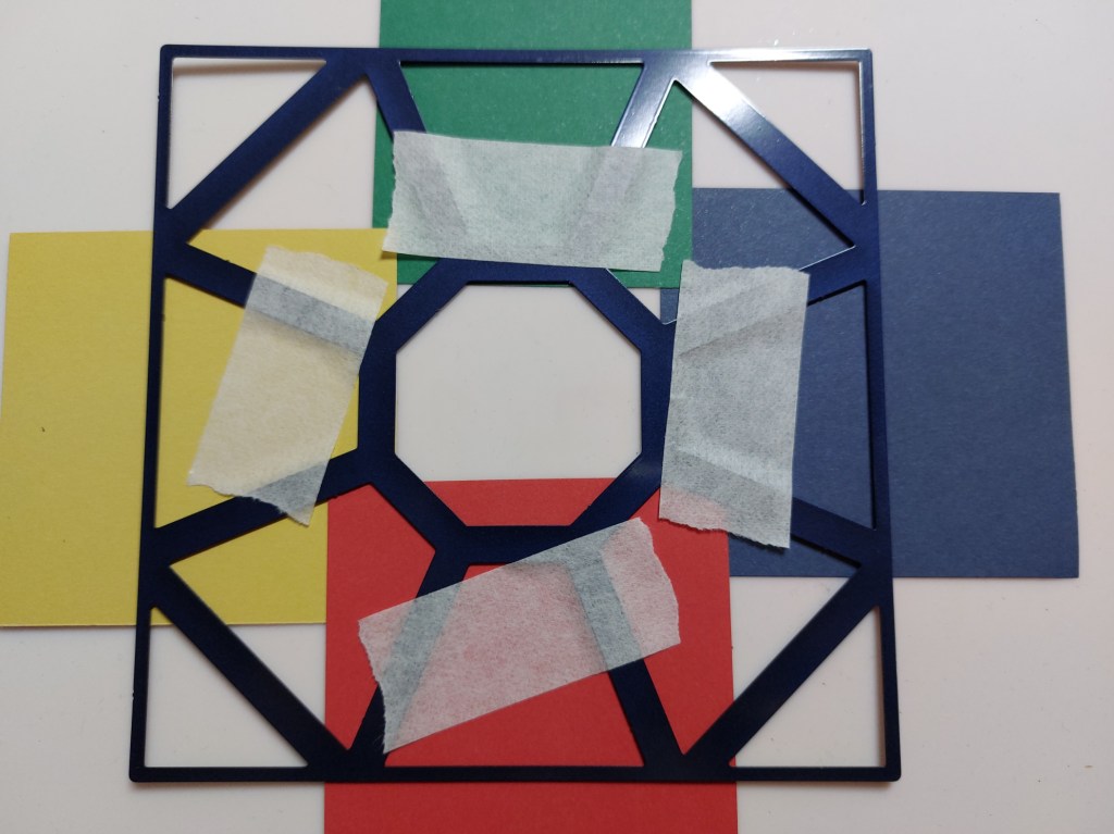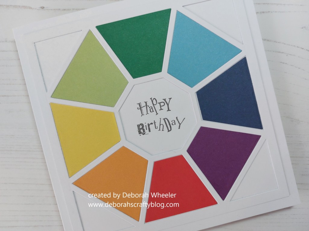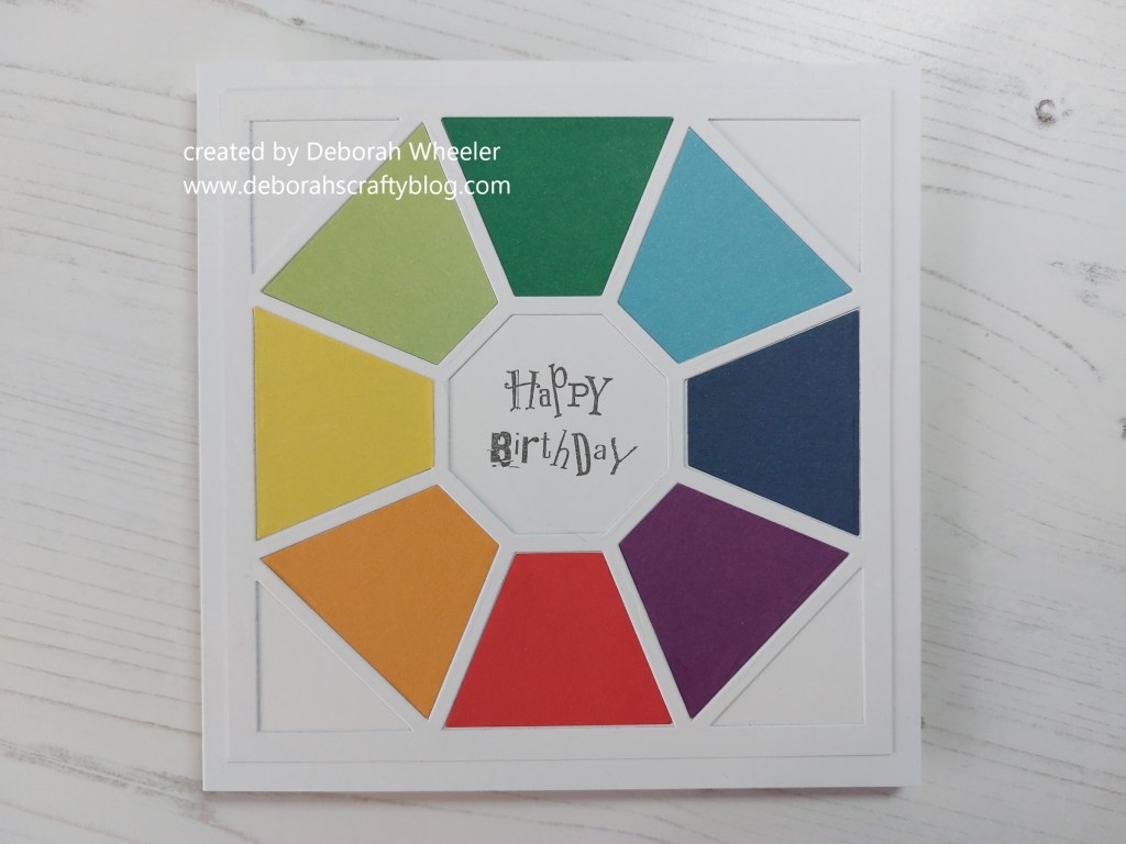 Welcome to my crafty blog and a look at the new ‘Abstract Layout 5’ die from ClarityCrafts that was released yesterday. It works in so many ways, but I’ve kept it very simple on this one, just using a rainbow of scrap paper pieces in the apertures. It nicely fits the challenges at AAA Colourful and Addicted to CAS, so here we go…