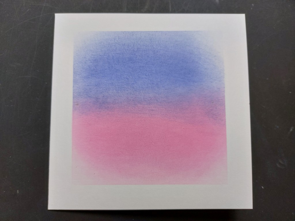 Starting with an offcut of black card, I cut the die into it, then trimmed it off at the sides and snipped the word out. I took a 5×5 card blank, masked the edges off with low tack tape and brushed ‘picked raspberry’, ‘blueprint sketch’ & ‘chipped sapphire’ Distress Oxides into the centre.