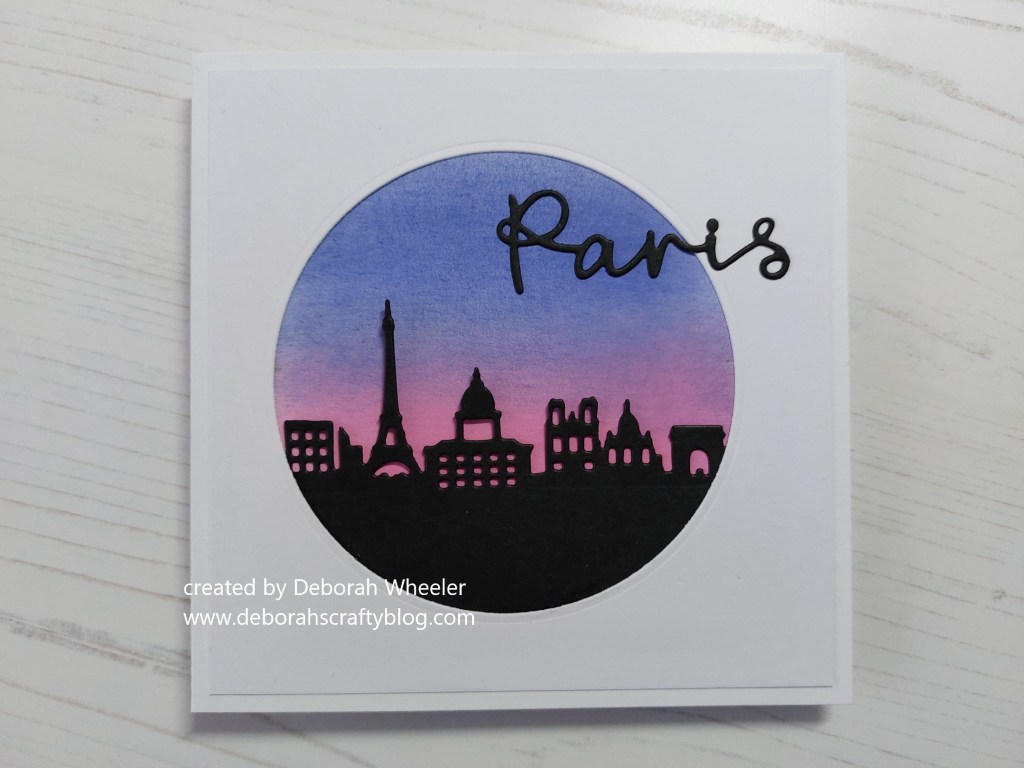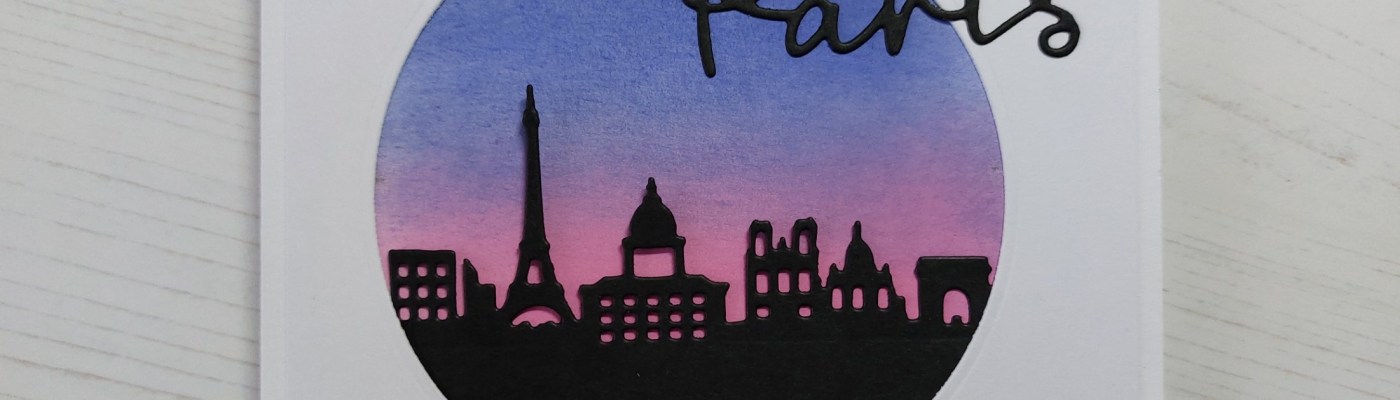 Hello there. I’m back with another of my demo’s from last Saturday’s TV shows, this time using the Paris skyscape aperture die from ClarityCrafts, which works beautifully for the layout at Atlantic Hearts (I swapped the heart for a circle die and rotated the sketch to put the sentiment at the top).