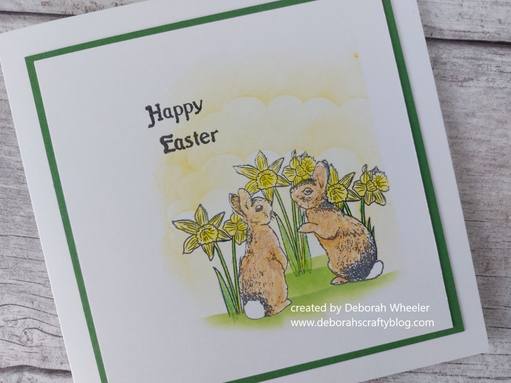 Hello crafty friends. Easter is getting nearer and a friend asked me to make her some cards featuring bunnies and daffodils – well, that was an easy one thanks to the new Wales framer set and ‘bunnies and moon shadow’ stamps from Clarity Crafts