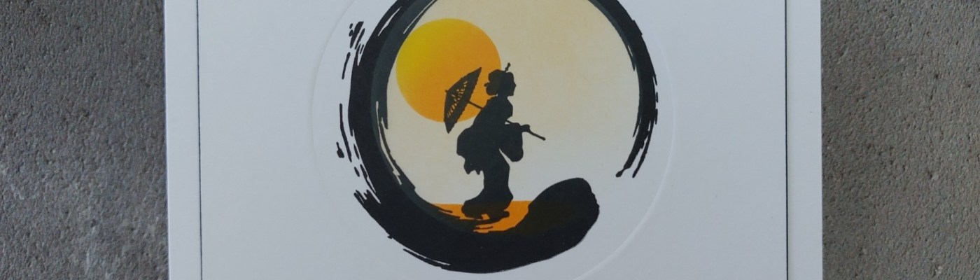 Welcome to my crafty blog! I’ve gone for another take on the new geisha stamps from ClarityCrafts, this time pairing it with one of the ‘enso’ stamps. Enso is a sacred symbol from Zen Buddhism; it means ‘circle’ and is traditionally drawn with a single brushstroke as a meditative practice in letting go of the mind and allowing the body to create.