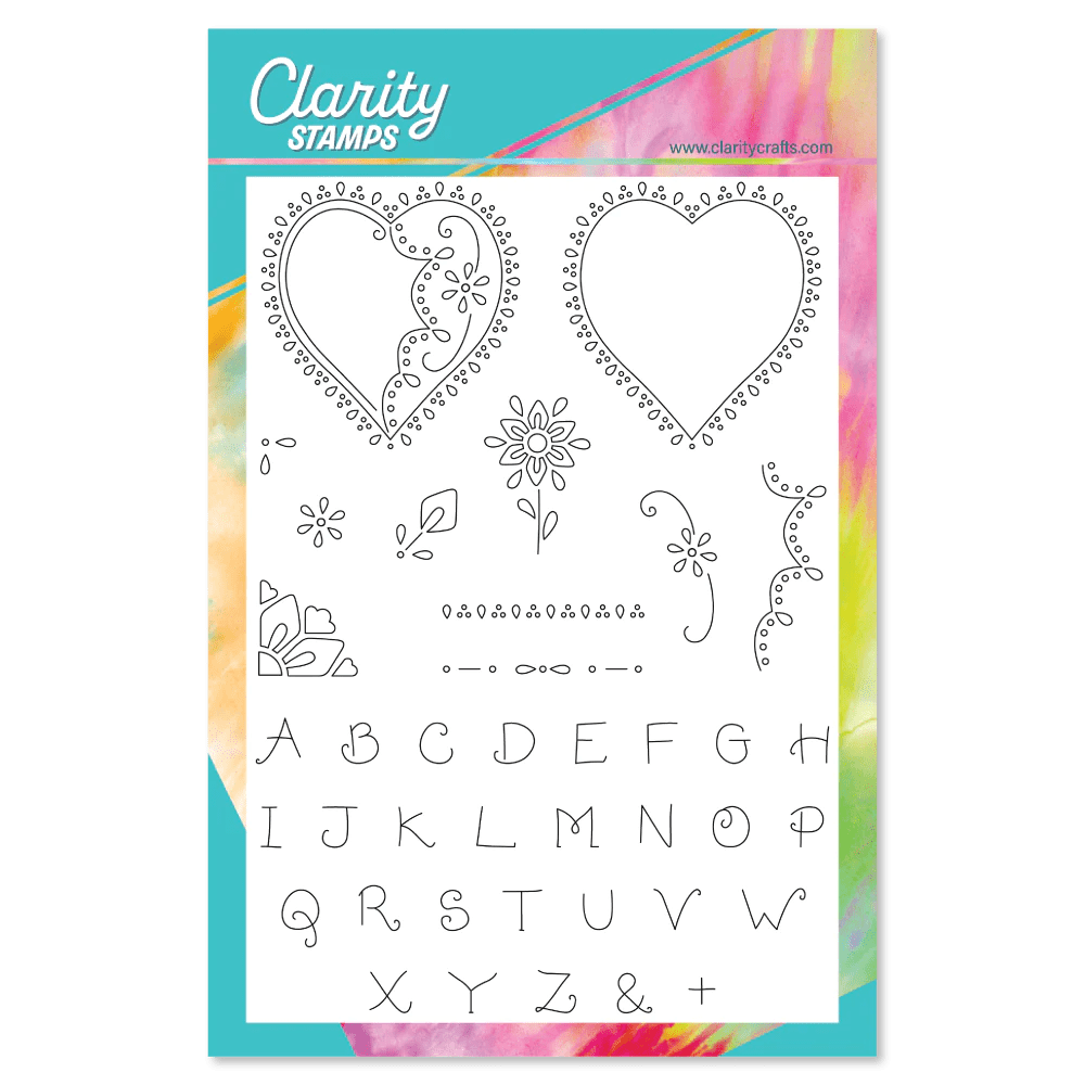 I’m back with a second card today, as ClarityCrafts‘ Barbara Gray is hosting A Moment of Clarity on the Clarity Worldwide Facebook page tomorrow evening (7pm Friday 19th April) with the fab new ‘loving heart’ stamp set, so this little offering is to tempt you in! These are beautifully delicate designs drawn by Barbara – perfect for the wedding season that’s heading towards us!