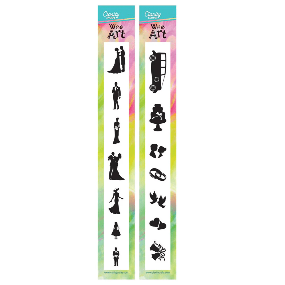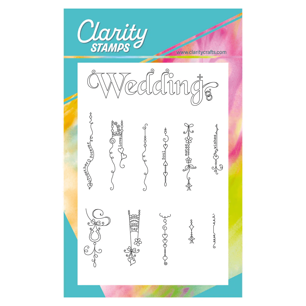 Hello again! I hope you’re not getting bored with the new ‘bijou dangles’ stamps from ClarityCrafts as I’ve still got more to show you! Today’s card pairs the wedding dangles with one of the ‘wee folk wedding’ stamps, picking up on the CAS wedding theme from AAA cards.