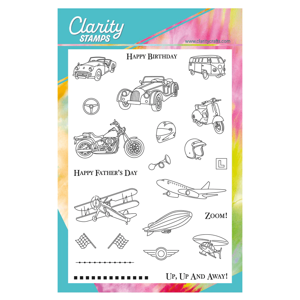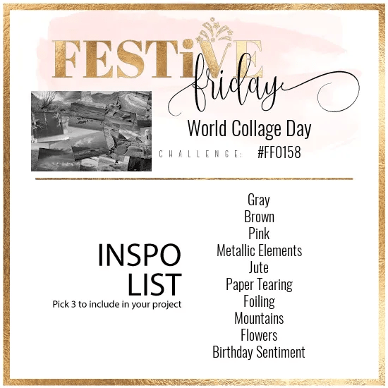 Hello there and welcome to something a wee bit different today – my first attempt at collage on a card! Our new theme at Alphabet Challenge is C for Car, which made ClarityCrafts ‘wings & wheels’ stamp set an obvious choice – and I decided the Darjeeling Infusions collage papers would make a perfect background, inspired by Festive Friday challenge (I picked up brown, paper tearing & mountains from their list).