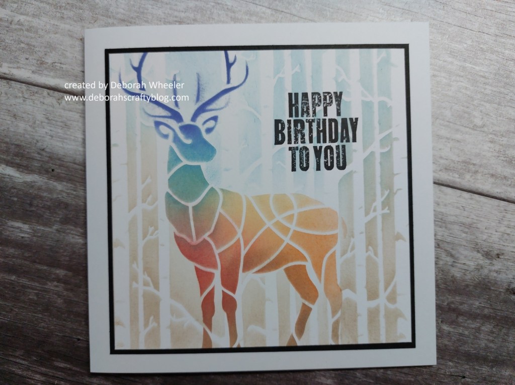 I trimmed the stencil card down so it would fit on a 7×7 card blank and added a mount of black card, finishing with the sentiment from the ‘celebrations 1’ stamp set.