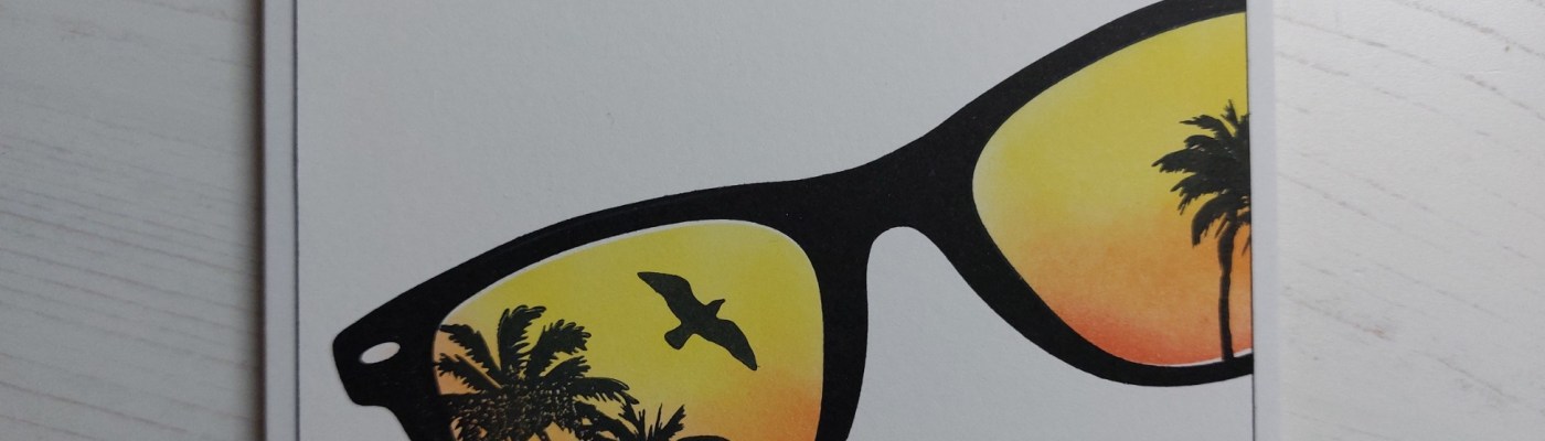 Such a lovely idea – to reflect the scene in the sunglasses. Very CAS and very lovely. Good save on the pen slippage. Yesterday, I stood a card on my desk to admire it as I’d just finished it only for it to fall over and land on an inked stamp. Lesson: clean up as you go! 🙂
