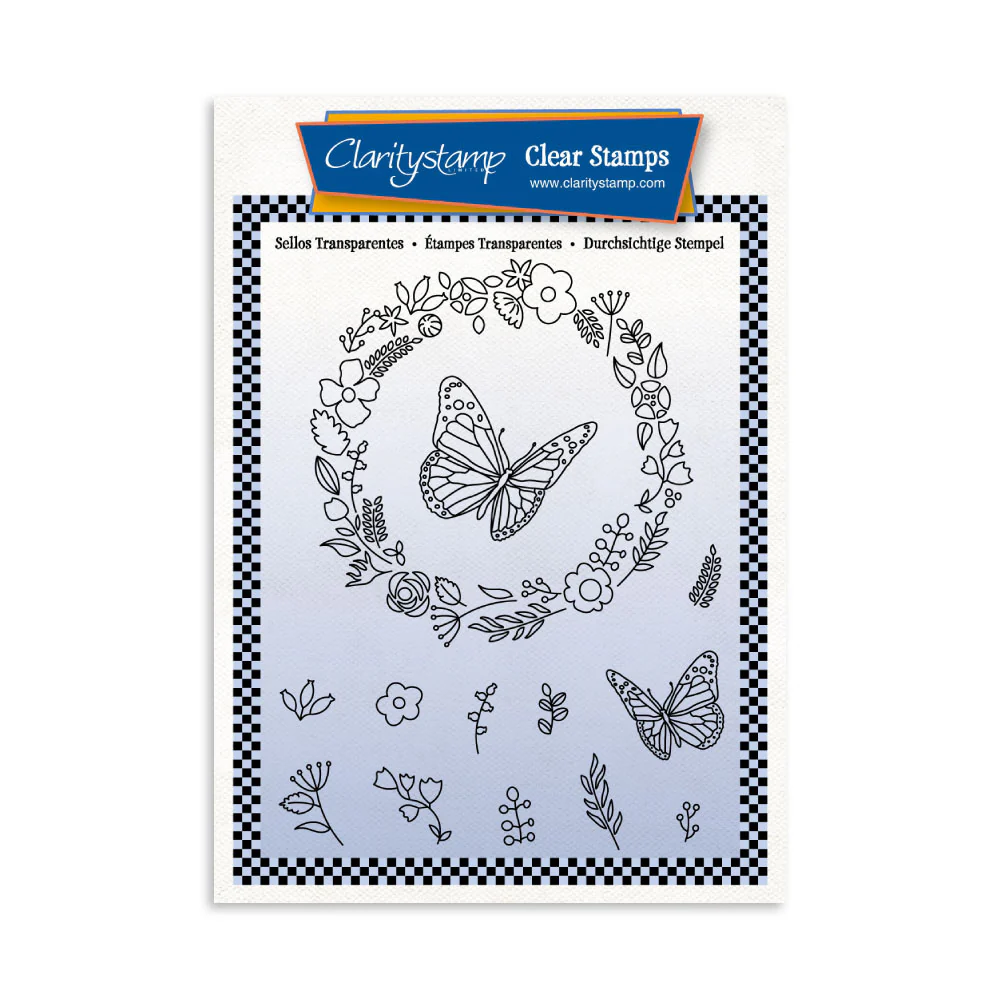 Good morning crafty friends! I’m a bit late posting this card for the new Sparkles challenge, which went live at 9am (having been away on Clarity’s two day crafting retreat and busy prepping for TV this weekend before I left, I’ve got behind with my scheduling!) You can no doubt tell that this month’s theme is butterflies and I’ve used the palette from Sunday Stamps along with ClarityCrafts‘ ‘butterfly wreath’ stamp set.