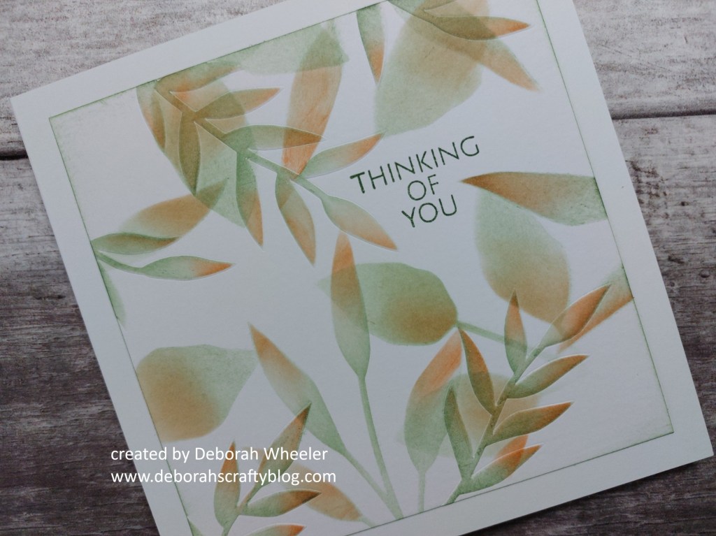 Embossing the first stencil to give the card texture has made those leaves stand out a bit more, with the others having a softer effect in the background.