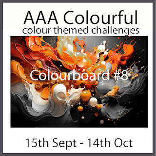 Hello there. Well, I’m still playing with autumnal colours, this time from AAA Colourful, but today’s card heads out to the African savannah for a tropical sunset using the elephants stamp from last month’s Clarity Craft Club, thanks to the theme at The Paper Players. Although it’s not got as much white space as I’d normally have on a CAS card, it’s a single layer (other than the mount and card)