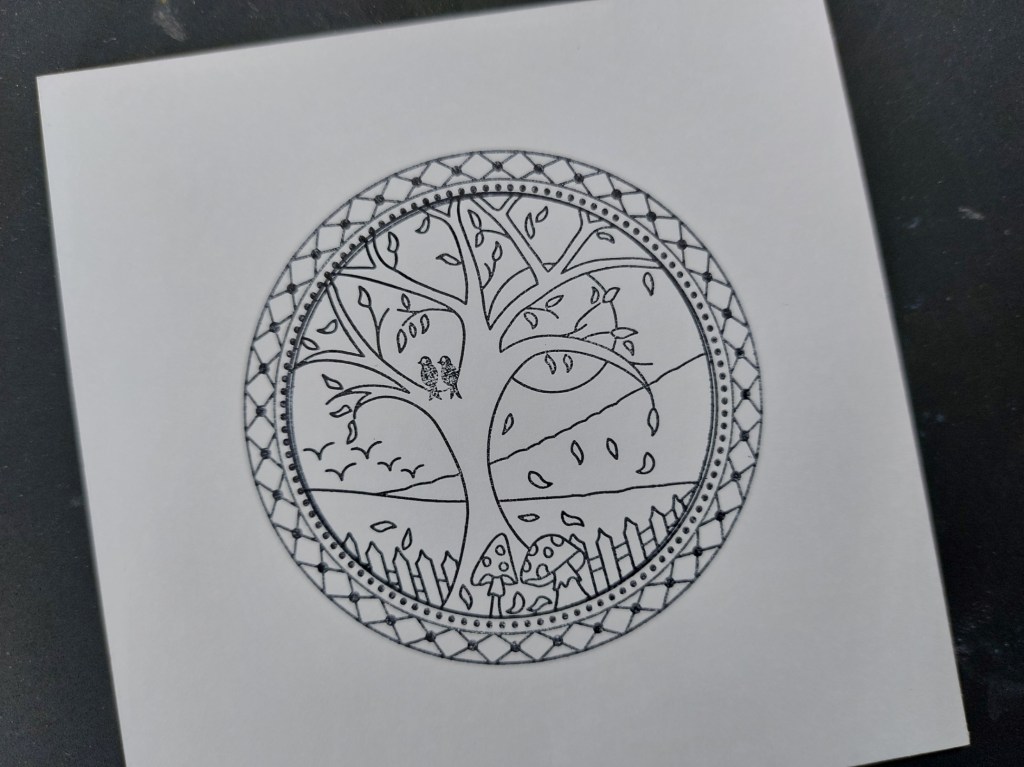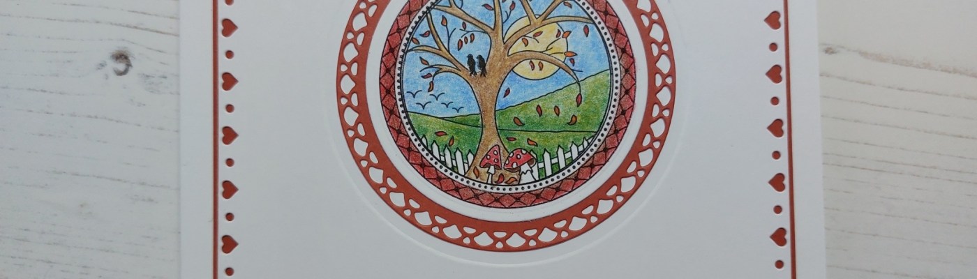 Hello everyone! I’m delighted to have been invited along as guest designer for the new challenge at Time Out, where we have this fabulous quote from Van Gogh for inspiration. I’ve used the ‘SHAC autumn & winter mandala rings’ stamps from ClarityCrafts to create this little autumnal scene, picking up the moodboard from Hand Stamped Sentiments and the ‘falling leaves’ theme from Double D.