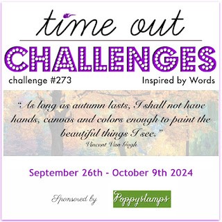 2. This is a wonderful fall themed card. I love all of the elements of fall, the leaves, mushrooms, black birds… It’s a wonderful creation for our quote. Thanks so much for your support of Time Out and for joining us as Guest Designer for this challenge.