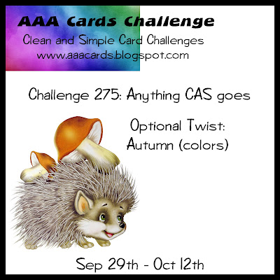 So, having used autumnal colours on my card, I’m going to share it with a few appropriate challenges – AAA Cards, Four Seasons and Coloful Options. But more importantly, don’t forget to tune in to Barbara’s show tomorrow – 3-5pm!