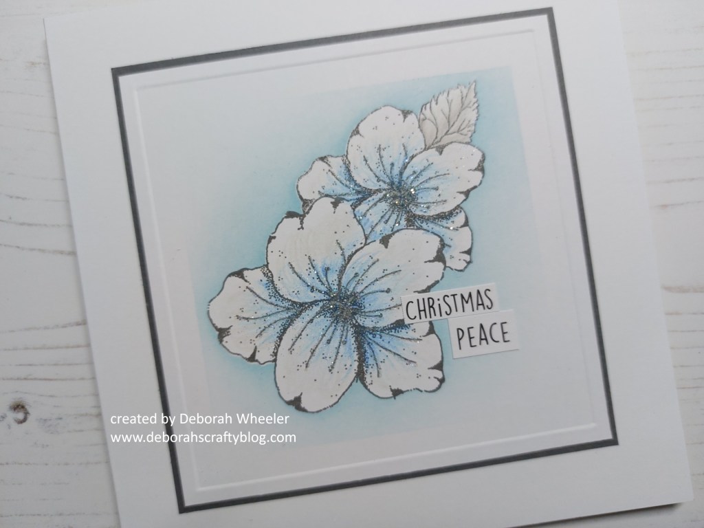 Hello again! I’ve managed to tear myself away from the ‘treescape’ stamps & masks and returned to the ‘season’s greetings flowers’ set that ClarityCrafts released earlier this week, thanks to our new theme of ‘Xmas flowers’ at Sparkles Challenges. I thought this week’s palette at Creative Colour was ideal for Christmas flowers, together with a minimalist take on the layout at Atlantic Hearts and the ‘blooms’ theme from Triple B.