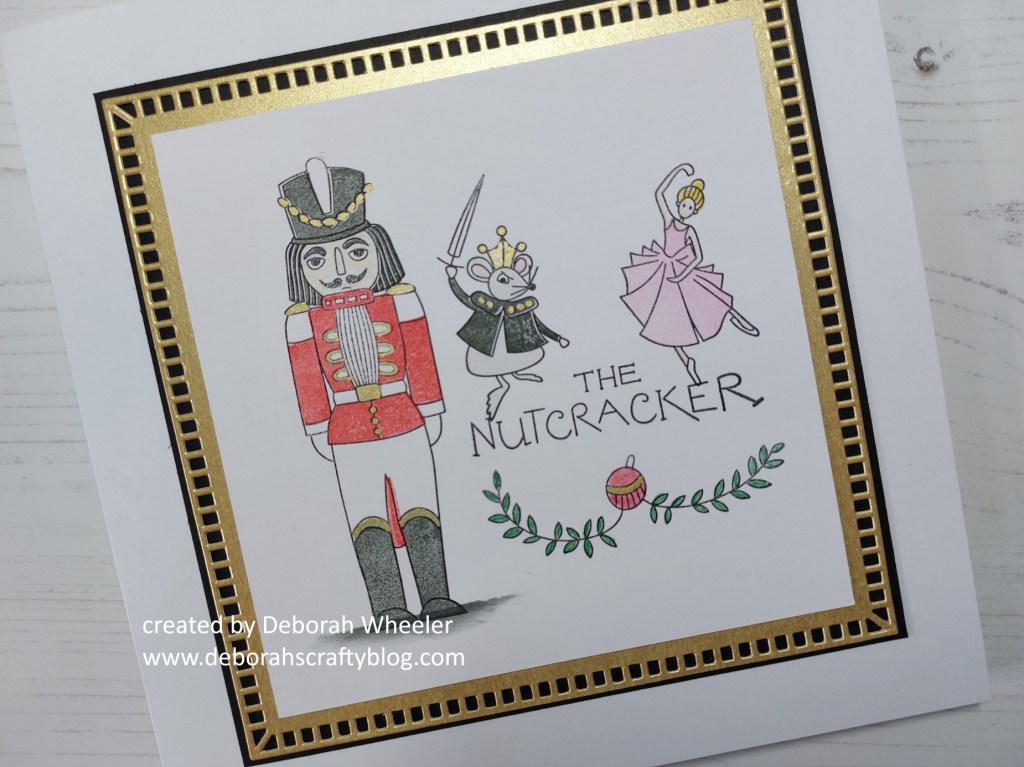 Hello friends and welcome to December! It’s Advent Sunday today, so it really does feel like time to turn our eyes towards Christmas during this season of waiting. Barbara is back on Clarity Social TV with a fab new set of hand drawn stamps based on The Nutcracker ballet, which is often performed at Christmas. My card today features three of the main characters – the Nutcracker, the Mouse King and the Sugar Plum Fairy, picking up the prompts of red, gold and bauble from Festive Friday‘s list.