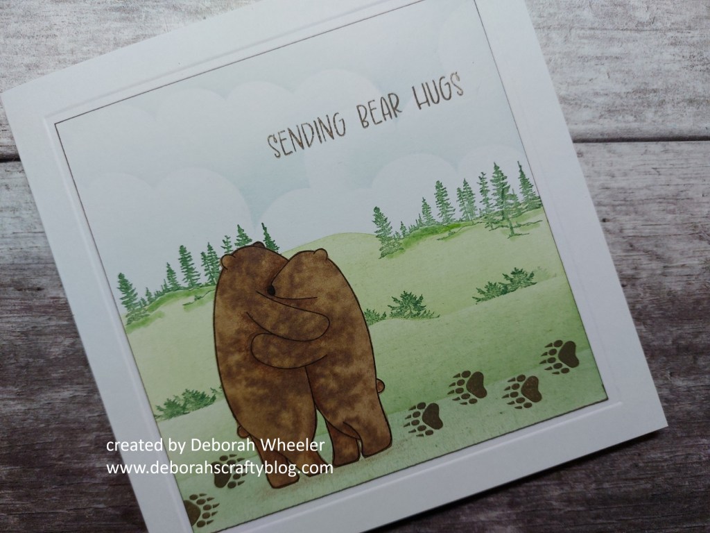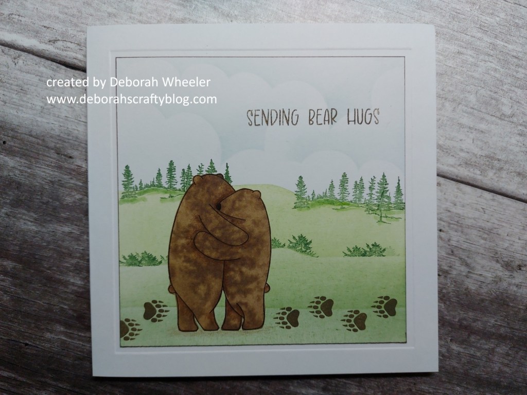 You created a wonderful scene to give your bears a place to snuggle, Deborah, and the paper you chose to cut them from was perfect. I love your story of how you met a bear on your walk and can understand your pulse rate rising. Thanks so much for CASEing my card and sharing it with us at Just Us Girls.