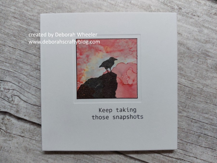 Now my cards don’t get much more ‘clean & simple’ than this! More importantly, it’s a message of encouragement to Janice to ‘keep taking those snapshots’!