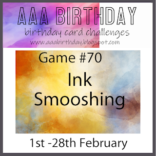 I managed to incorporate several challenges into this one starting with the colours from Sunday Stamps and layout from Sketch Saturday. Seize the Birthday are looking for a heart on the card (can you spot it?) and AAA Birthday made me very happy with their ink smooshing theme!