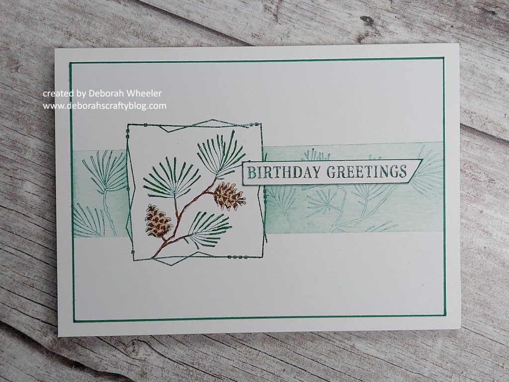 Hello friends – I’m back today with our new sketch at CAS Colours & Sketches which runs for the next two weeks. I decided to use another of the SHAC floral panel sets today, this time the Scots pine – love these classic images.