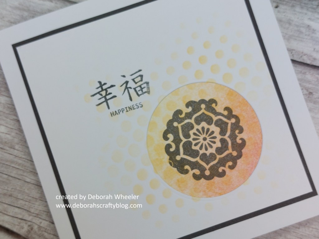 Hello! Welcome to today’s crafty blog and another look at the new ‘Japanese floral tiles‘ from Clarity Crafts. This time I’ve just used one of the three-way overlay stamps – being able to combine all three of a design, or two of them, or use onay of them on their own really adds to the mileage you can get from this set. I’ve pulled a few challenegs together again for this card – the layout is from Freshly Made Sketches (I flipped it to sit on the other side of the card), I’ve picked up the bottom row of TicTacToe‘s grid with ombre, square and diecut, and finally Stencil Fun.