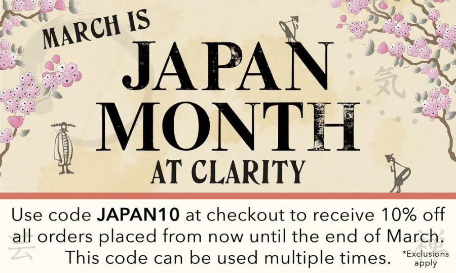 Barbara will be on screen at 2pm today over on Clarity’s YouTube channel, and you can always watch on catch-up if you miss it. And don’t forget, you’ve just got until midnight tonight to use the JAPAN10 code and get 10% off your order!