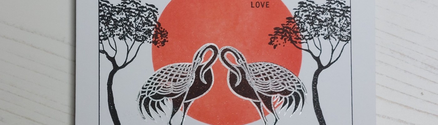Hello and welcome to Monday! It’s also the final day of Clarity’s Japan month and we’re having a final celebration with these brand new cranes stamps – a pair of sets giving you the outlines and the infill silhouettes.(and they come with Clarity’s fantastic pre-cut masks). I’ve gone for a very different Japanese inspired look from yesterday’s card, this time picking up the rising sun image from their national flag. My images and the circle of the sun pick up the challenge from AAA cards, adding a geometric shape to the silhouettes.