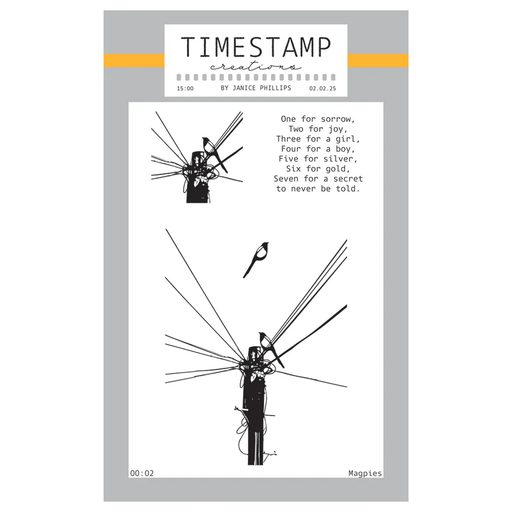 Hello friends. It’s been a bank (public) holiday here in the UK today for Easter Monday, which I was very grateful for after a busy weekend! I did have a few things to be getting on, but carved out a bit of time at my craft desk for today’s card using the fab magpie Timestamp Creations stamp set by Janice Phillips. I thought it worked as a last minute contribution to the current Freshly Made Sketches challenge with the palette from AAA Colourful (I stayed with the blue tones this time round)