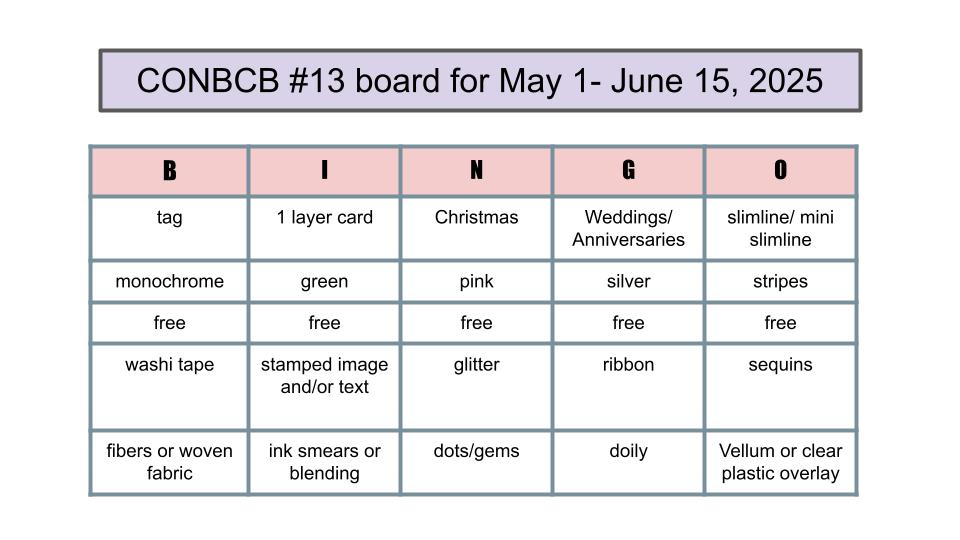 The calm serenity of the green tones and falling leaves is a wonderful idea for a sympathy card! The CAS style also helps keep it that vibe of ease. Well done use of Column Ii elements on the #13 bingo board! Thanks for creating a terrific project for ConBC design inspiration section! — Becca