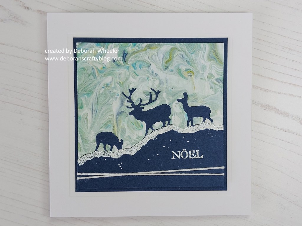 That background is just fantastic Deborah and adds a great detail to your deer silhouettes. It definitely gives a sense of swirling snow. lovely!