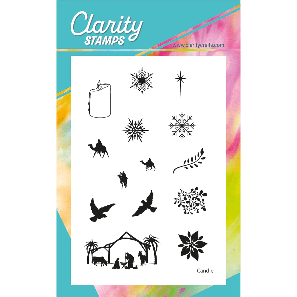 hello crafty friends and welcome to this week’s Christmas card! I know the sun’s been shining outside, but it’s week 20 of 2025 and I’m keeping up with my personal challenge! This week’s offering, using Clarity’s nativity miniatures stamps is inspired by the nativity theme at 52 Christmas Card Throwdown and the K for Kraft at ABC Christmas, together with the ‘anything goes’ theme at The Holly and Ivy
