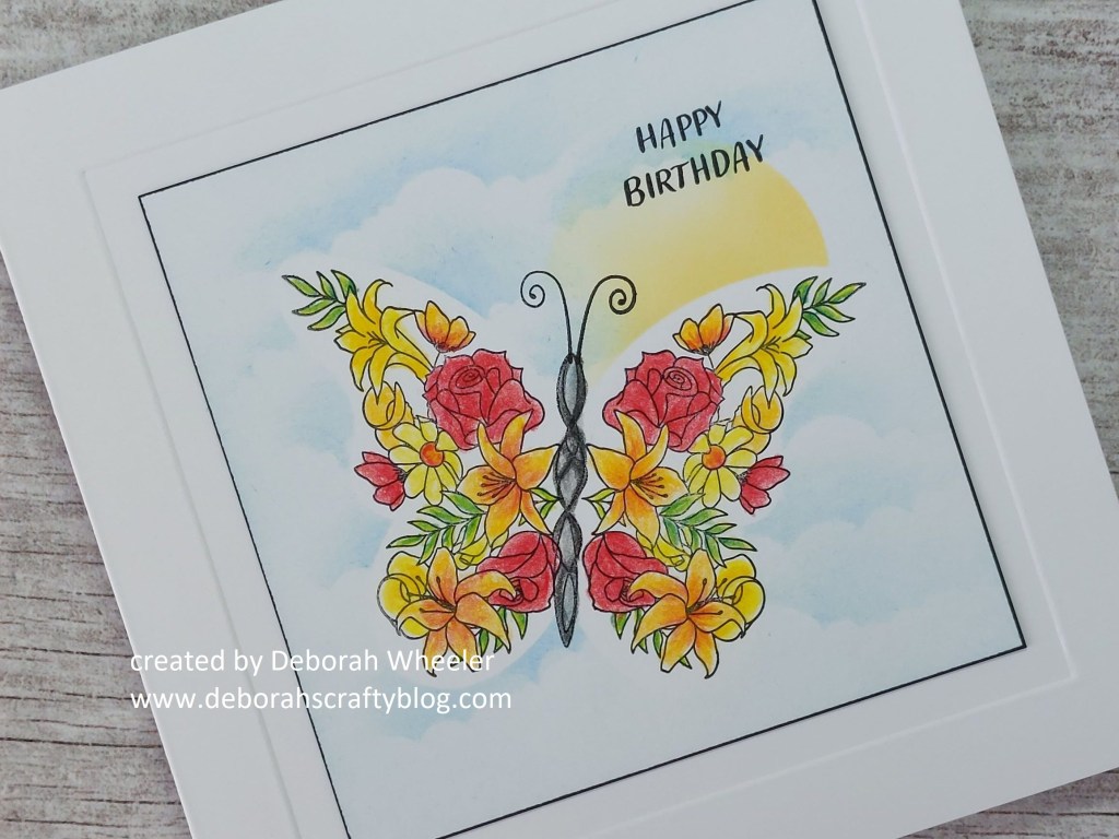 What a lovely floral butterfly, Deborah- so nicely colored against the blue sky with the sun and white clouds! Thank you for sharing with us at Inkspirational: Hot! Julia xx