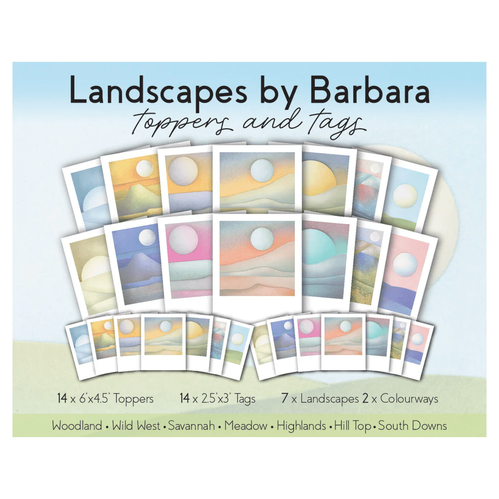 Having chosen my topper, I ran low tack tape around the edges of the image and then added masks from the Meadow set above and below the water to isolate it, so that I could deepen the blue tones in that area by sponging ‘uncharted mariner’ Distress Oxide across it. I lifted the masks and stamped the two fences and tree from the set onto the image with black Archival ink (I wish I’d done the tree on the other side of the river in second generation stamping, but too late now!) I then added the flock of birds from the South Downs set. I cut the topper down to a square, mounted it on a layer of Rainbow River paper and attached it to a 6×6 card blank. I took one of the new birthday stickers, mounted that on a bit of the Rainbow River paper and popped it into place. With time ticking on, the final step was to add highlights to the water with a fine white Posca pen – one of the many tips from Barbara Gray on the 1-2-3 Landscape course.