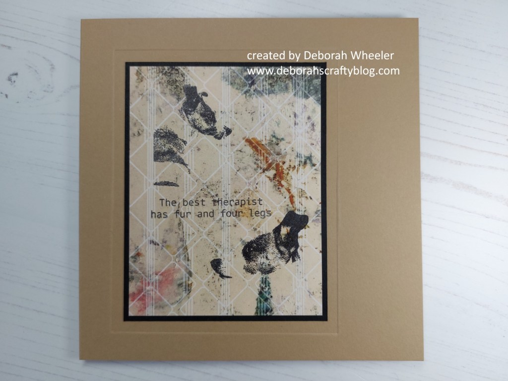 I’ve pulled a couple of challenges together on this one as well, starting with brown, black, animals & animal themed sentiment from Festive Friday‘s inspo list for World Pet Memorial Day. I’ve also picked up the ‘furry friends’ theme from Stamping Sensations, a new-to-me challenge.