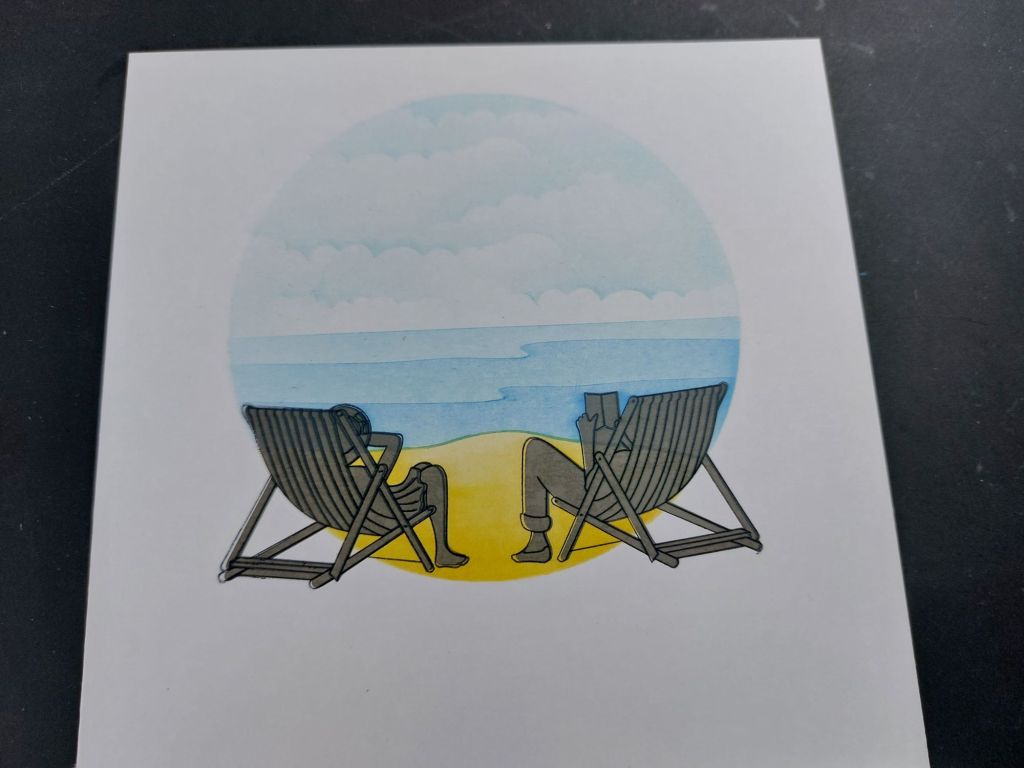 I covered the deck chairs over with the pre-cut masks that come with the stamps