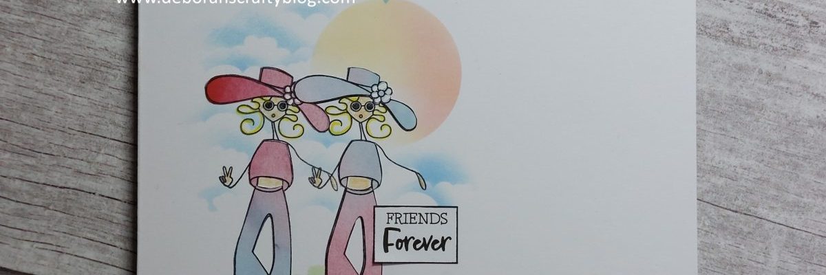 Hello crafty friends. I’ve got a busy DT day today, starting with our new theme at Alphabet Challenge, where Tee has given us G for Girlfriend. It was a great opportunity to get the Hippie Chicks back for another outing, this time with a little paper piecing and added inspiration from TicTacToe (CAS, summer colours & any sentiment), Four Seasons‘ summer theme and Make My Monday who are also out for summer fun.
