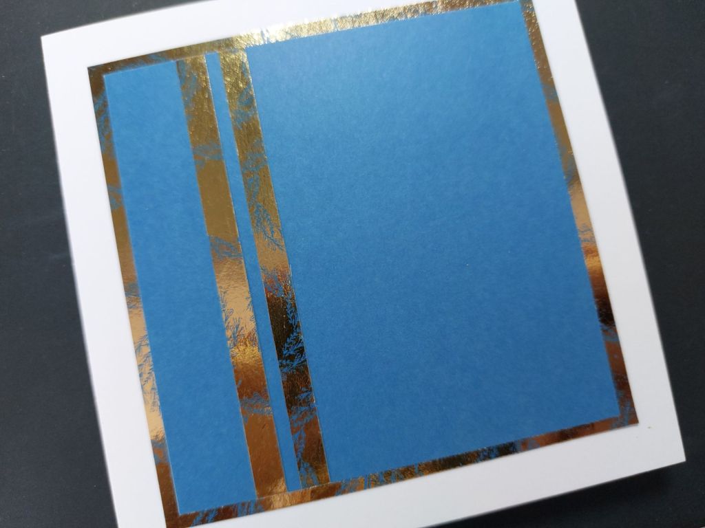 I’d foiled one of the BOW-WOB sheets of small wreaths , using the negative ‘waste’ foil on a piece fo the teal paper from the pack. Now, this foiling didn’t go quite as well as for the card I shared yesterday – I got a couple of creases in the wax carrier sheet when putting it all through my laminator, which meant there were lines on the teal foiled piece. Not one to waste anything (and banking the learning experience), I ploughed on with it…