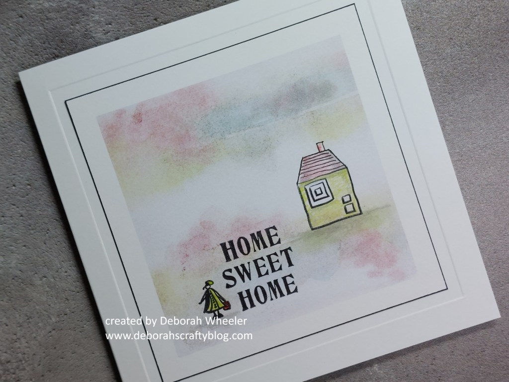 Hello crafty friends! I’ve got a busy day today with two shows on Clarity Social TV – I’m kicking off at 10am with Sam’s Shapes stamps, so here’s a look at one of my demos using the ‘don’t be such a square‘ set (plus a little friend!) This first demo is also my design team card for the new H for Home theme at Alphabet Challenge, thanks so the addition of a roof to the square stamp!