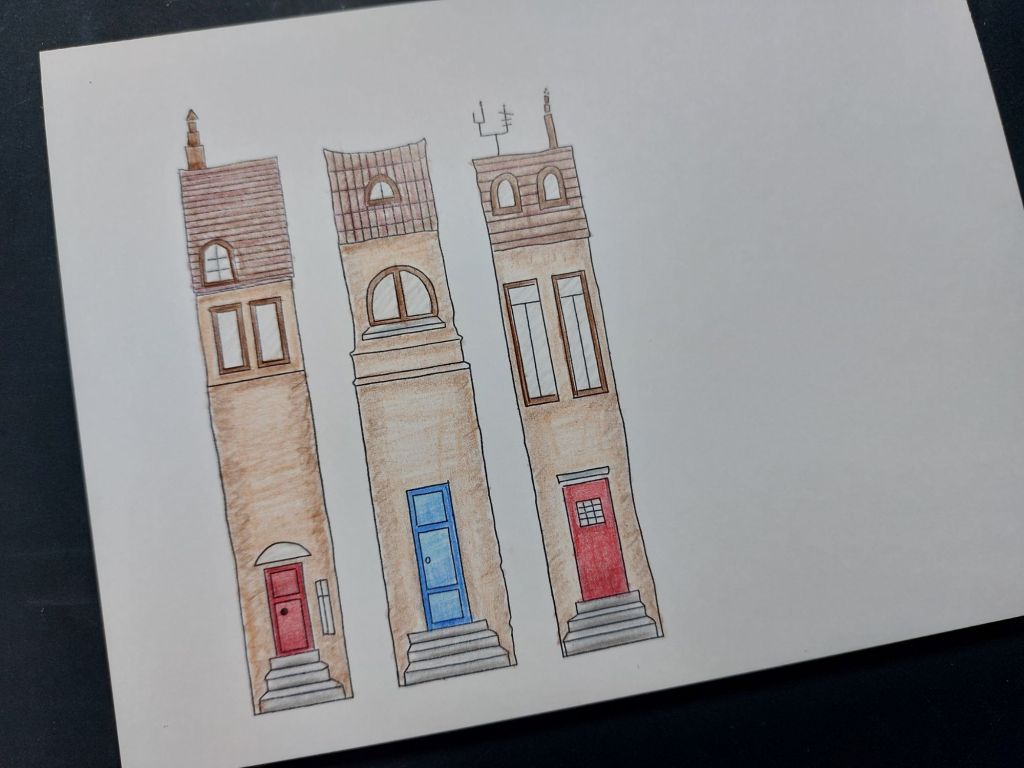 These tall houses are fantastic for this sketch! Hope you’re having a great time!